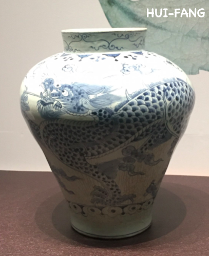 印象中去年的汝窯是以超級尊貴身份與其他宋朝瓷器一起展出,從來沒有想過這麼珍貴的文物,不僅並非展覽的主要焦點(不過還是很吸睛啦….),而且還和越南的「青花加彩猴王」、韓國的「青花龍紋罐」等東亞瓷器出現在同一個展廳內。