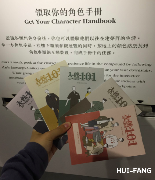 如同右邊照片顯示,在初步認識這五種角色後,參觀者可以選擇扮演其中一個角色,並透過角色手冊上的線索,完成接下來的展覽任務