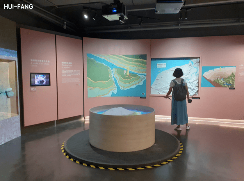 除了被書法療癒之外,藝術館C棟建築的地下室還有一個可以免費參觀的大園尖山考古展示館。我很喜歡這個展覽的展板文字,是透過虛構的石器時代角色來第一人稱敘述與說明,有種朋友帶你認識他的生活的感覺。另外,製作精良的動畫、潛顯易懂的考古文物展示,以及豐富好玩(且還沒壞掉)的互動裝置,也很推薦大人、小孩都來體驗一番,是種有別於書法展的學習與療癒喔!