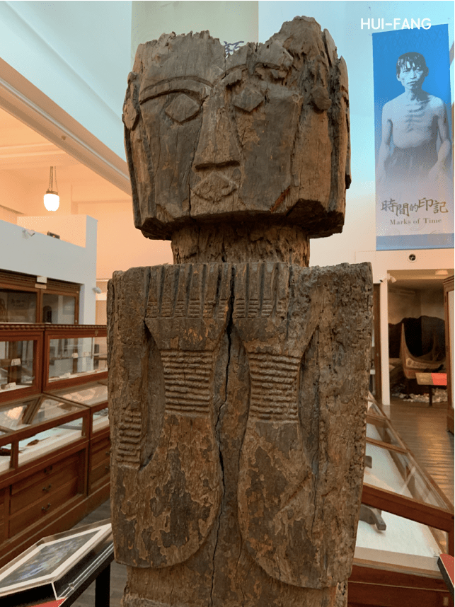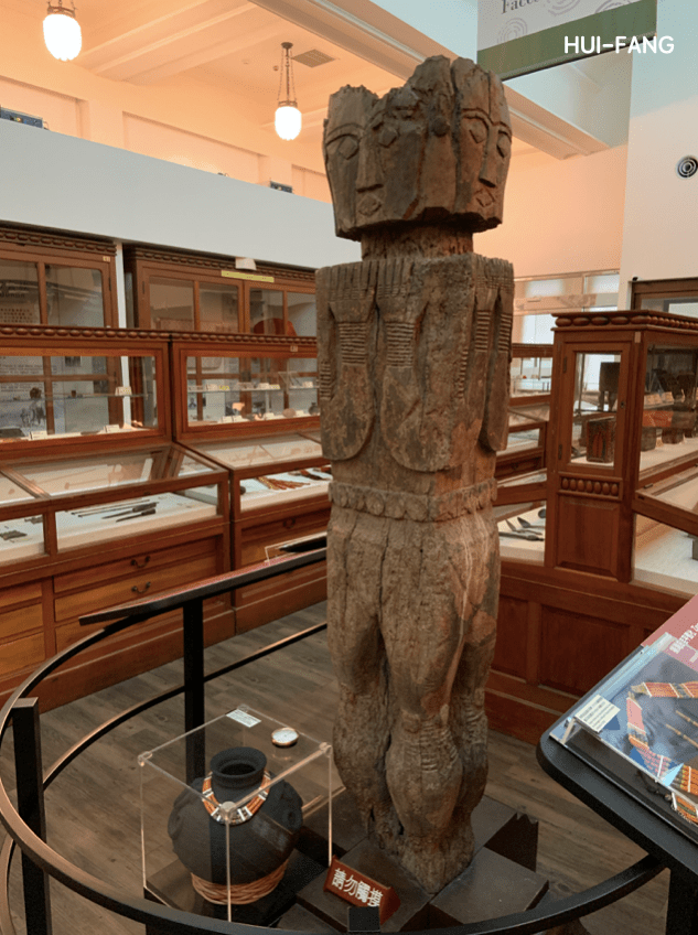 如果你不知道國寶的文資身份有多厲害的話,讓我告訴你現在典藏在國立故宮博物院的千歲以上的宋朝書畫、國立史前博物館的卑南遺址人形玉玦,以及國立臺灣博物館裡的康熙臺灣輿圖等等,這些都是國寶等級的文物啊!所以到底為什麼來自佳平部落的四面祖靈柱會被放在一個稍微有點不起眼的地方呢?是因為臺大沒錢?還是博物館尚未有心力思考如何重新規劃展示方式?