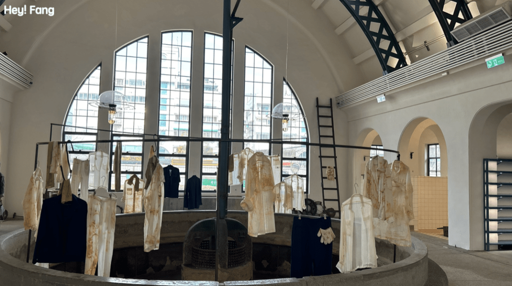 最後,也不要錯過〈氤氳時代——員工澡堂常設展〉,這棟建築是過去臺北機廠的員工,在下班回家前洗去滿身汗水髒污和泡澡的澡堂。這裡除了展示日治時期建築模型、澡堂設備,還能看到曾在機場工作的老員工訪談影片,我覺得這些影片不僅保存了那個時代的記憶,也能讓參觀者體會在臺北機廠工作的生活。