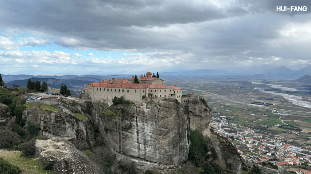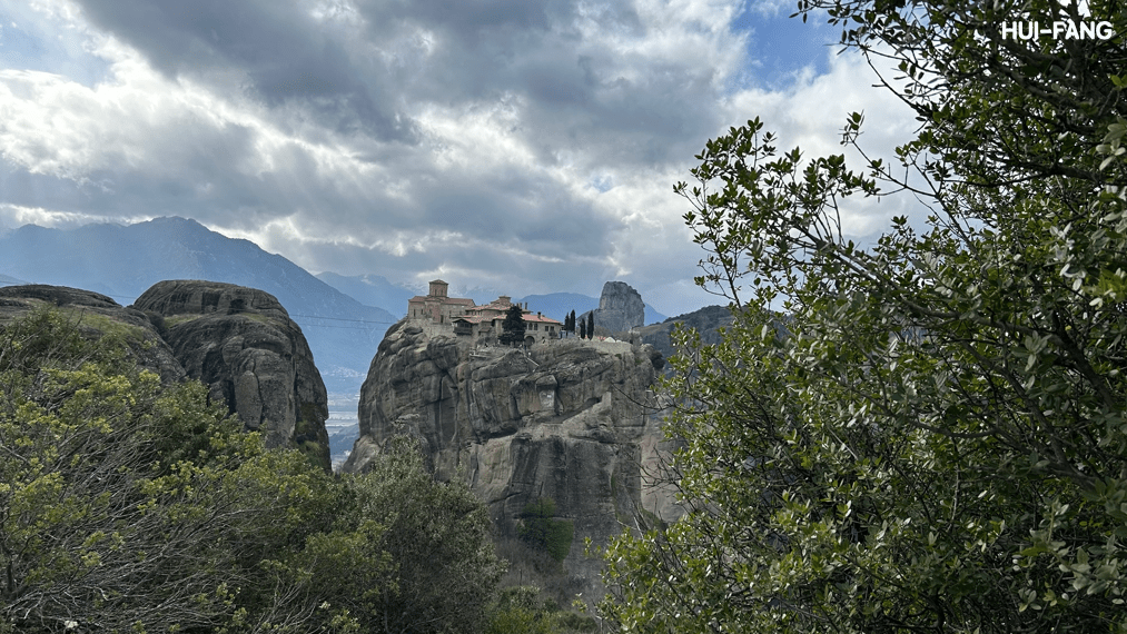 梅特歐拉(Meteora)是歐陸希臘中北部的世界自然與文化遺產,梅特歐拉在希臘文裡的意思是「飄浮在天空中」。這裡矗立著被冰河切割過的柱狀巨岩,而那些巨岩的山崖上座落著六間目前仍在使用的紅頂修道院,當雲霧飄來時,修道院真的彷彿飄浮在天空中一般。這次我參觀了其中三間修道院,包括:需要爬幾百個階梯才能到達的特里亞達修道院(Agia Triada)、可以實際見到許多黑衣修女的聖史蒂芬女修院(Agios Stefanos),以及我認為教堂壁畫最漂亮的瓦爾拉姆修道院(Varlaam)。
