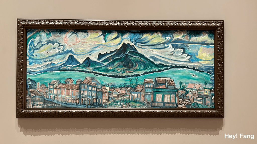 首先,在《「往來/照見」典藏研究展》當中,許多繪畫作品以淡水風光、九份山城、東北海岸等地為主題,這些具體或抽象表現的風景能夠讓觀眾快速辨識出熟悉的場景,進而把觀展經驗與自己的記憶連結,產生親切感與歸屬感。其中,我發現淡水和九份真的是畫家與攝影家的偏愛!就像參觀歐洲美術館時常看到不同藝術家描繪義大利威尼斯一樣,這兩個著名景點似乎已成為新北市最具代表性的風景之一。